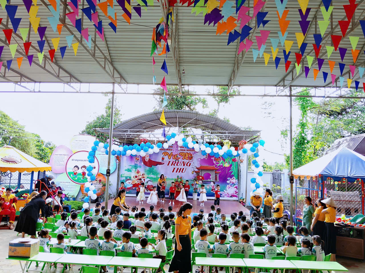 Lễ Trung thu tại Trường Mẫu giáo Hoa Hướng Dương được tổ chức trong không khí vui tươi và ấm áp. Ngay từ sáng sớm, sân trường được trang trí rực rỡ với cờ, đèn lồng và những mâm cỗ đầy màu sắc. Các bé trong trang phục đẹp đẽ háo hức tham gia nhiều hoạt động hấp dẫn như rước đèn, múa lân, phá cỗ và xem biểu diễn văn nghệ. Mỗi nụ cười, mỗi ánh mắt trong trẻo của các bé đều thể hiện niềm vui và háo hức đón Tết Trung thu. Buổi lễ không chỉ mang đến cho trẻ niềm vui mà còn giúp các em hiểu thêm về ý nghĩa của ngày hội trăng rằm, góp phần nuôi dưỡng tình yêu thương, sự gắn kết và tinh thần đoàn kết trong mái trường Hoa Hướng Dương thân yêu.